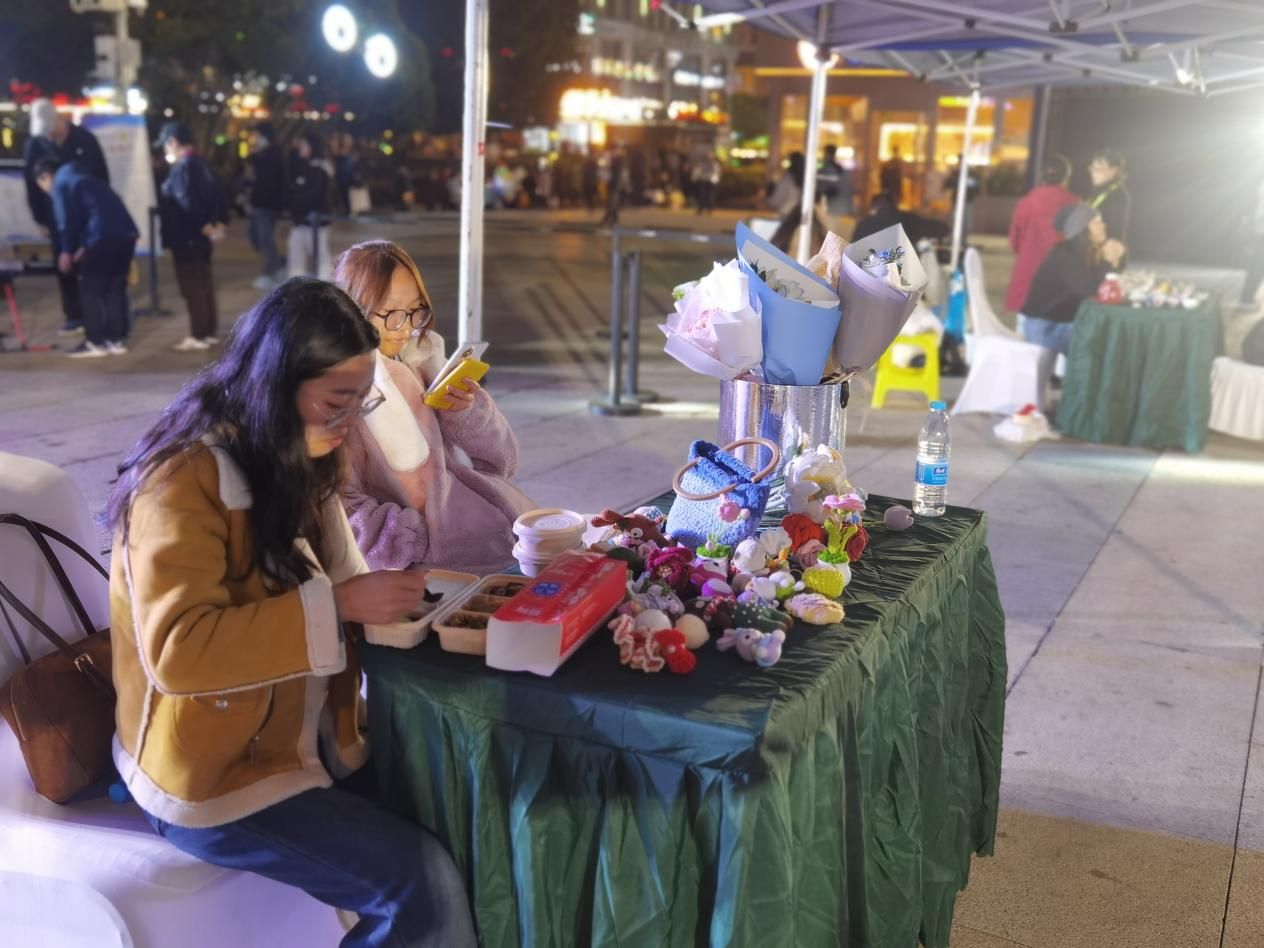 贵阳点子工艺技术有限责任公司(一束织团队)将传统钩针手工技艺与创意花艺相结合,现场展示了钩针编织的花卉、玩偶等手作产品。“团队以‘传承手工温度、创新生活美学’为理念,就是想打破传统手工与日常场景的隔阂,让小巧精致的钩针作品成为可触摸、可使用的生活元素。”贵阳学院2023届广播电视编导专业毕业生徐福聪表示,这类充满“手作温度”的产品也赢得了不少女性市民的喜爱。